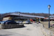 Mi felsétáltunk a kisvasút végállomásáig, megnéztük az előszezoni menetrendet, és a lángossütőnél sült kolbászt vettünk. Bandi ezt nagy kedvvel falta - igazi férfi!