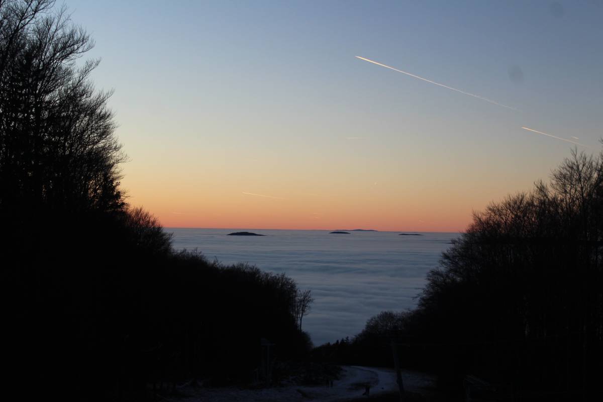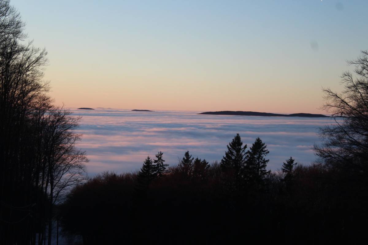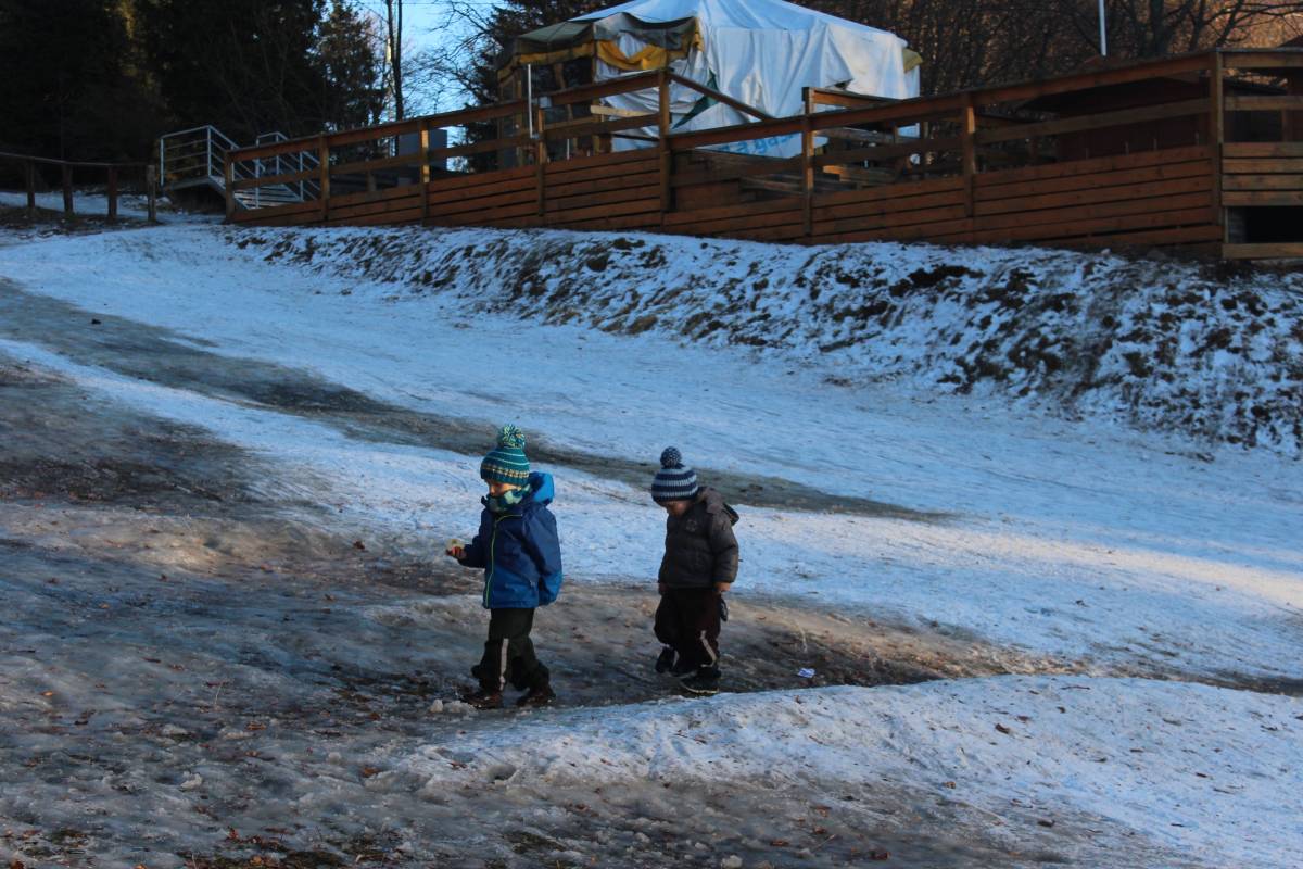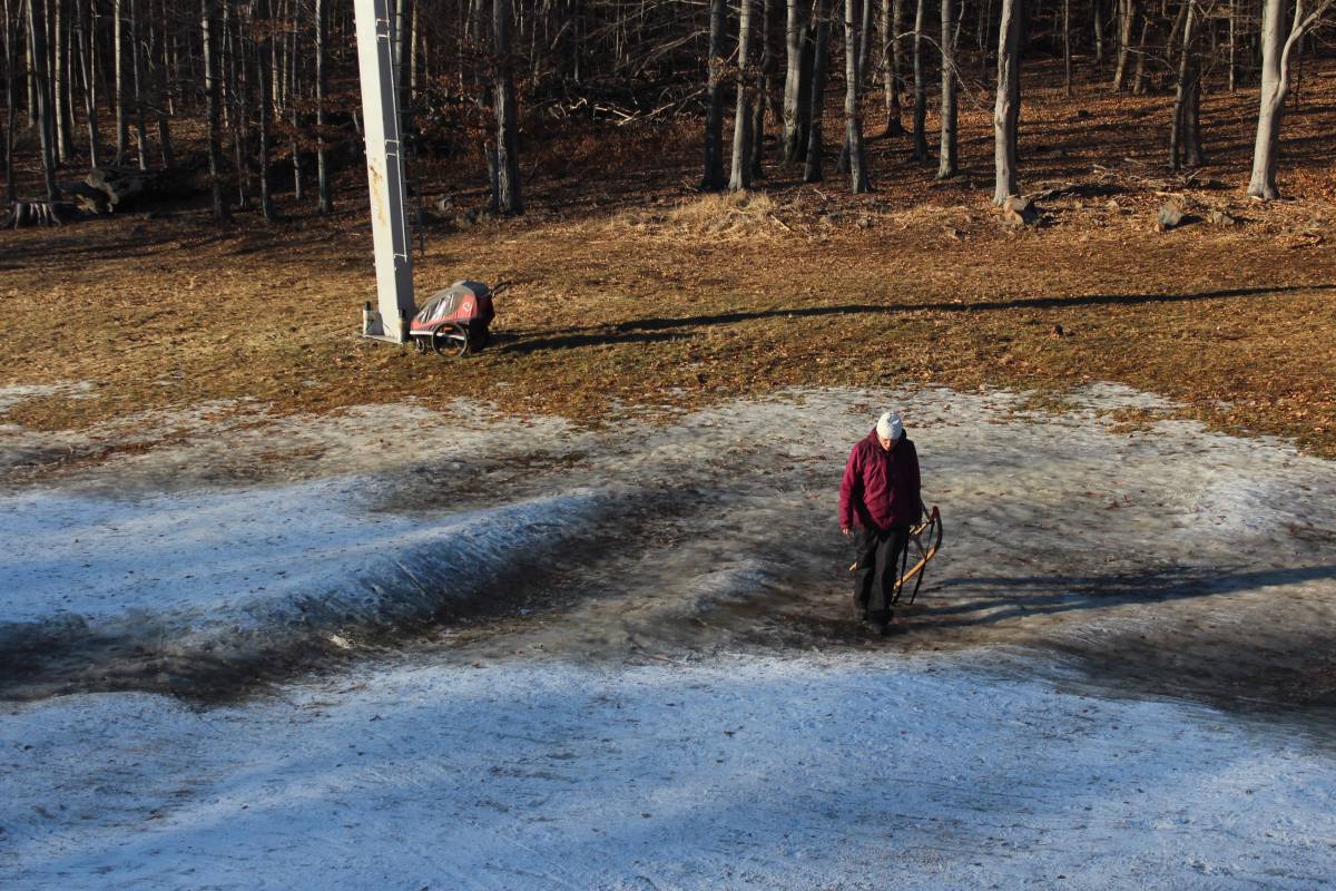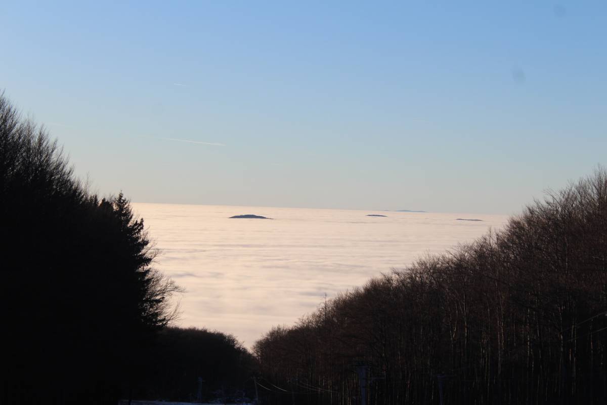 szánkózás, 2025. január 19.A normafai szánkózás után még megmaradt a hideg idő, másrészt a BEAC-szilveszteri gyalogtúránkon olyan híreket kaptunk, hogy a kékestetői sípálya üzemen kívül van, ezért a szánkózás most nem tilos. Nosza, egy vasárnap délutánt rászántunk, és meglátogattuk a hegyet. Hó jószerivel csak a sípályán volt, és ott is alig. Mindenesetre Juli egyedül lecsúszott jóval a sífelvonó alsó végén túl, én pedig Mikessel a Veronika-rétig, vagyis a sípálya aljáig. A képeken megfigyelhető, hogy a hegység ködpaplanba bújt, melyből csak a csúcsok meredtek ki többé-kevésbé.