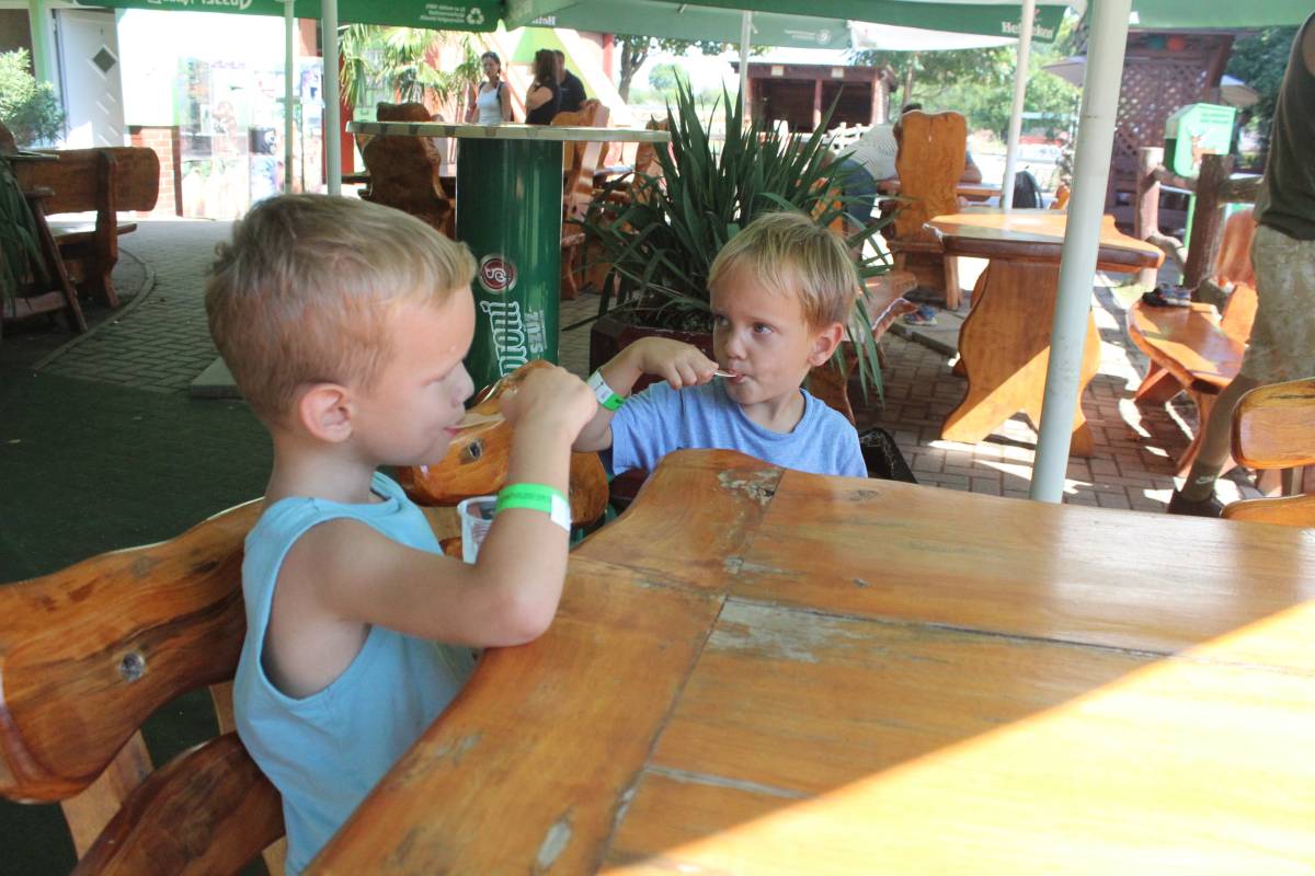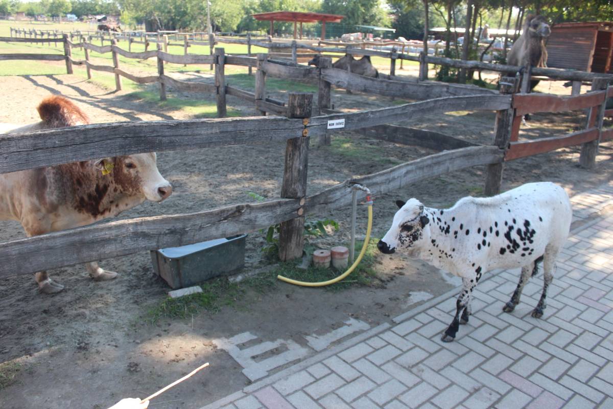 A rossz aszfaltút elcikkant egy sintértelep mellett, majd beért a Bella Állatpark utcájába, ahol tavaly hosszan sátoroztunk a "tanyakempingben." Most pótoltuk akkori mulasztásunkat, hogy ti. kihagytuk ezt a nem éppen olcsó, de látogatásra mindenképpen érdemes állatkertet, melyben a gyerekek szórakoztatása végett számos állat szabadon vonult a látogatók között, de állatsimogató, bisztró, ugrálóvár és gömbfoci is volt benn.